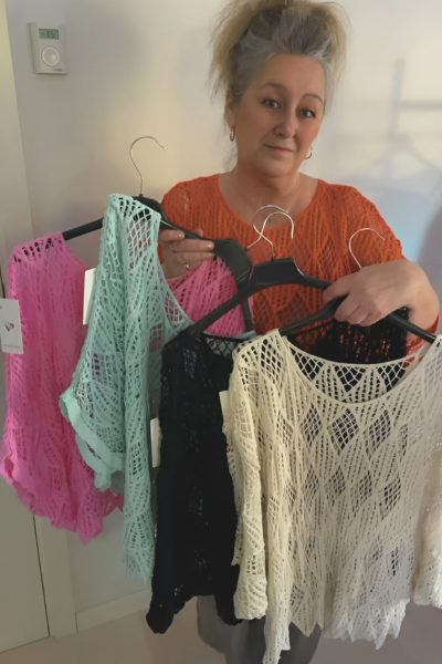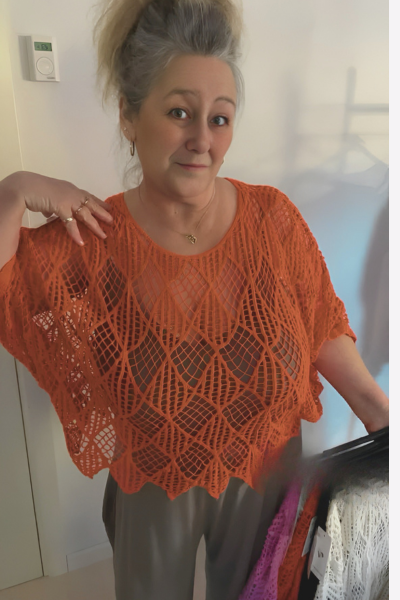Denne flotte hæklede top er et must-have til sæsonens garderobe. Det luftige og feminine design giver et elegant og afslappet look, som er perfekt til både hverdag, ferie og sommerens hyggelige dage.