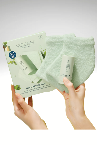 Få den ultimative transformation af fodpleje med vores Heel Repair Duo, der består af vores Moisturizing Heel Socks og Solemate Heel Repair Balm.