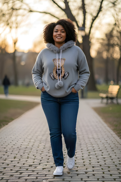 Smuk glitterbamse foran for et feminint og sjovt look