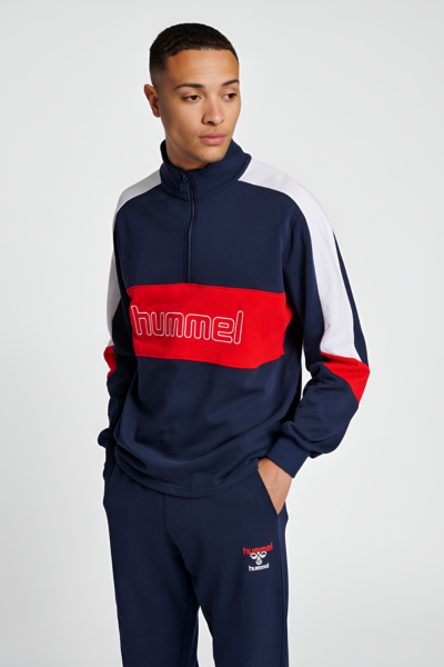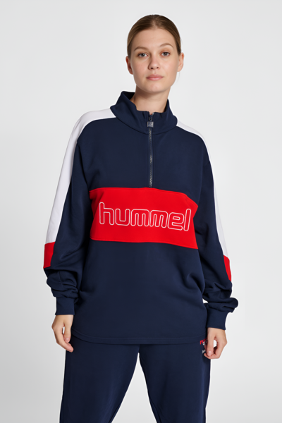 Smut i denne hummel® trøje med smarte kontrastpaneler på ærmer og bryst. hmlIC CLAUDE HALF ZIP SWEATSHIRT er fremstillet af det bedste sweatstof til suveræn fugtafledning, temperaturregulering og (frem for alt) komfort hele dagen. Logoet er stolt printet på tværs af brystpanelet nedenfor den halve lynlås, som giver dig fleksibilitet til at bære trøjen på din egen måde.