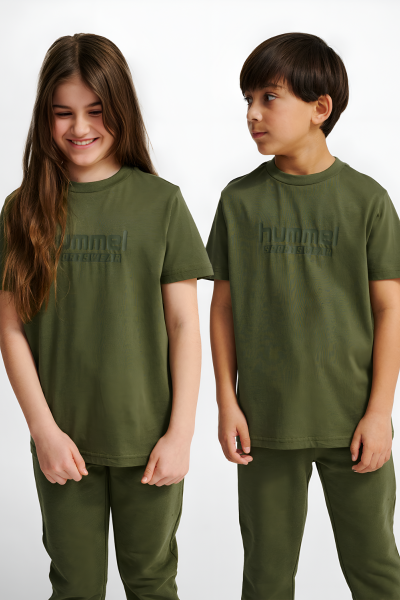 JR BASE T-SHIRT S/S er en kortærmet T-shirt til børn med rund hals og en klassisk pasform. T-shirten har et enkelt og ensfarvet udtryk med et hummel-print på fronten.