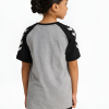 JR LOGO T-SHIRT S/S er fremstillet af blødt, strikket jerseystof med økologisk bomuld. Den har trykte hummel-chevrons på ærmerne og et stort hummel sportswear-logo på brystet.
