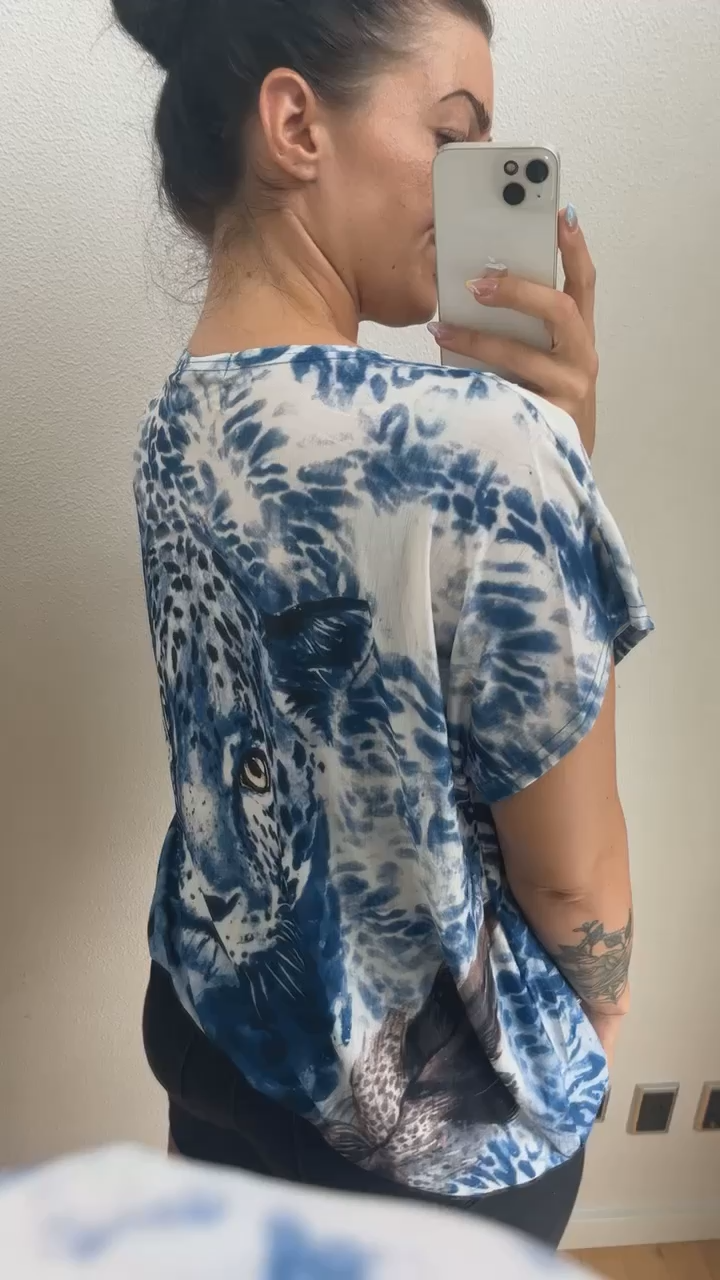 Meget populær flotte kortærmet bluser/tunic, med et fantastisk print med Leopard og similisten.