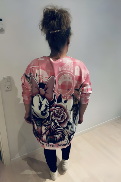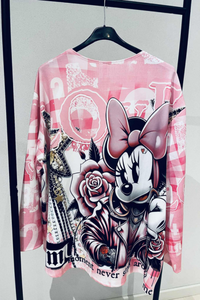 Blusen har et smukt og feminint print i rosa nuancer med den elskede Minnie, fine detaljer og et moderne twist, der gør den både sød og stilfuld.