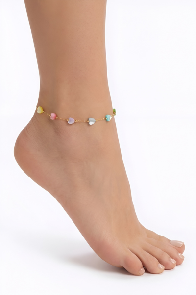 Smuk ankel kæde med små søde pastelfarvet hjerter