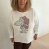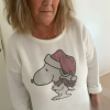 Denne bløde og hyggelige bluse i hvid babyfløjl er perfekt til både hverdag og julestemning. Fronten prydes af en smuk glitter Nuser med nissehue og halstærklæde, som giver et charmerende og festligt touch – uden at det bliver for meget.