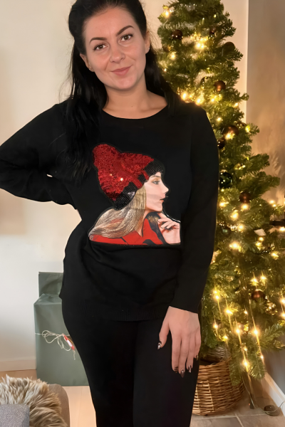 Pasformen er afslappet og behagelig, hvilket gør den perfekt til både jeans og leggings – et must-have til dig, der elsker en strik med personlighed og stil.