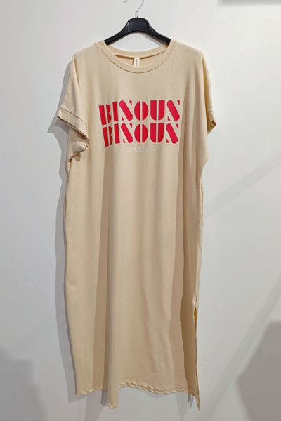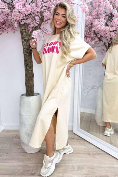 Forkæl dig selv med denne smukke og komfortable t-shirt kjole i blød bomuld. Perfekt til både afslappede dage og styling med sneakers eller sandaler.