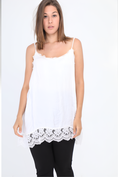 Super sød underkjole længde 85 cm, mange bruger dem som sommerkjole, top/tunika eller under bluser til korte bluser eller strik så man kan se den fine blonde kant forneden.